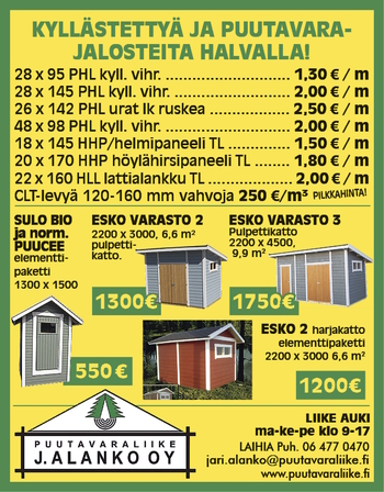 Puutavaraliike J. Alanko Oy:llä on yli 30-vuoden kokemus laadukkaan, jalostetun puun toimittamisesta.